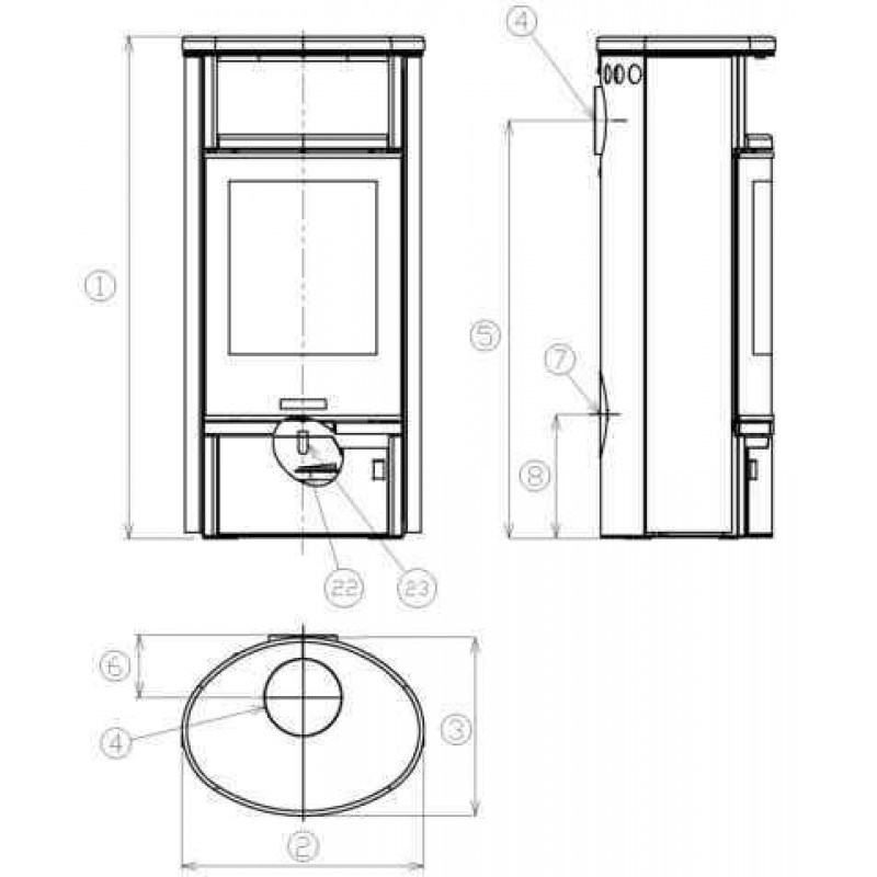 ABX Arktis 8 otočný, krbová kamna, šedý plechKrbová kamna na dřevo.