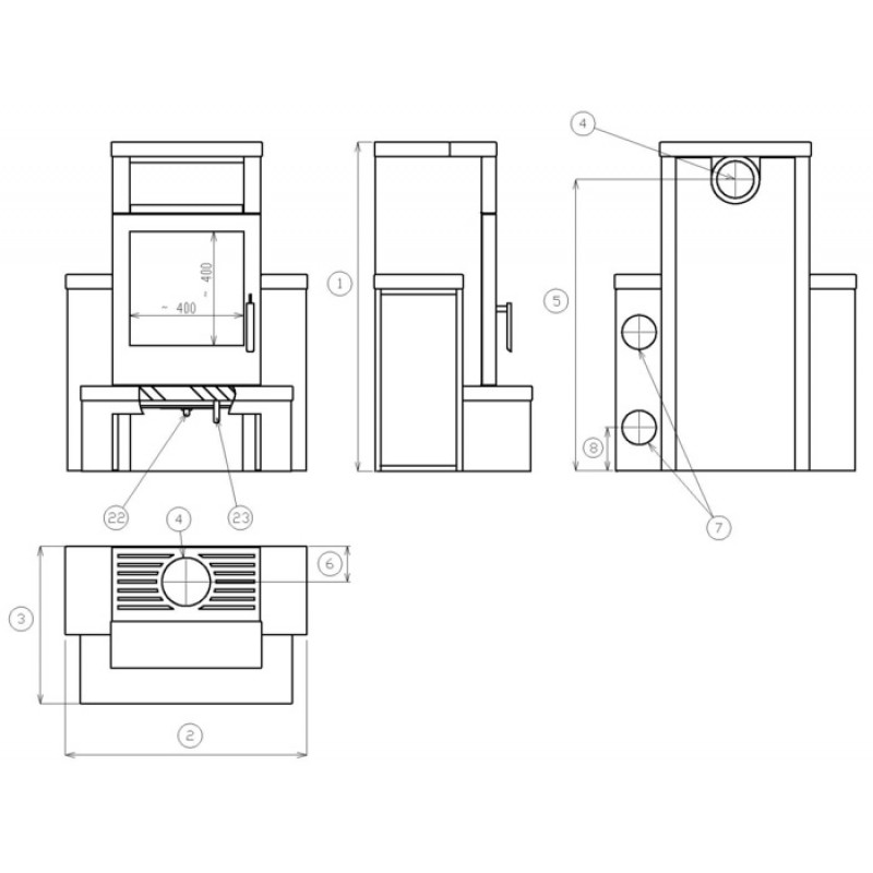 Vzdálenost osy horního kouřovodu (mm): 125