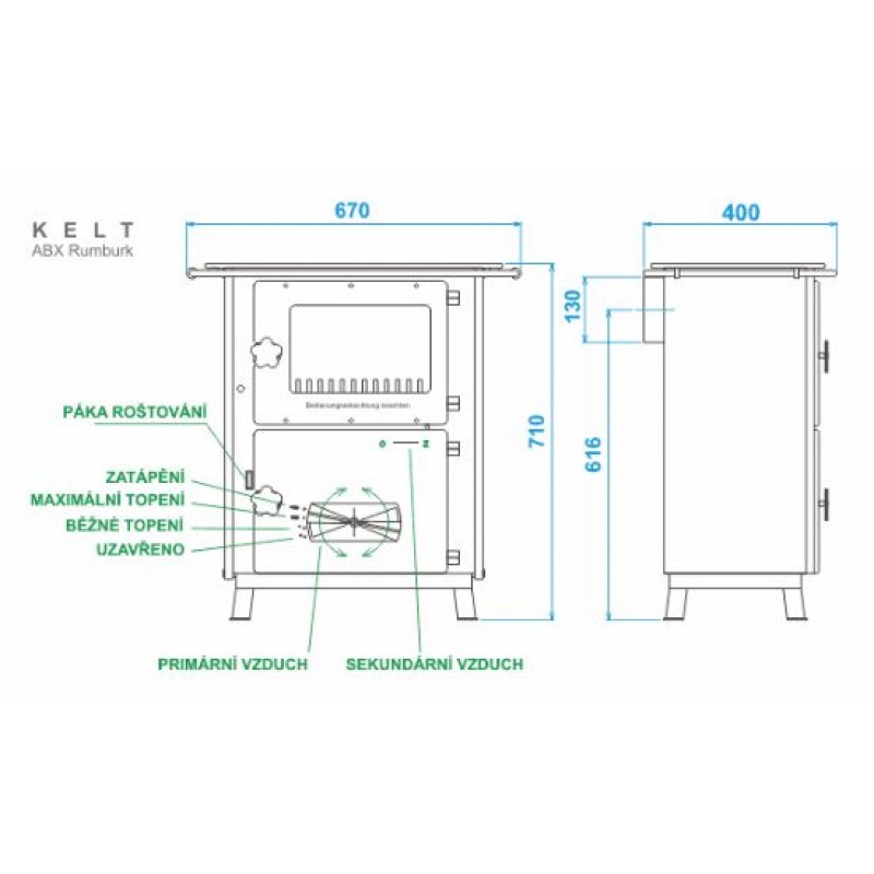 ABX Kelt, krbová kamna na dřevo a uhlí, šedý plech