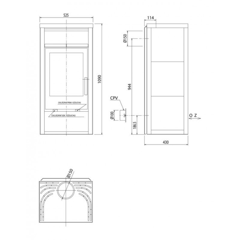 Sekunderní vzduch pro čistotu skla a terciální vzduch pro ještě větší čistotu spalování jsou samozřejmostí, jako možnost využití horního a zadního vývodu a přívodu spalovacího vzduchu z vně budovy.