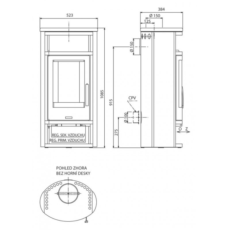 ABX Polar 4654-4-II krbová kamna na dřevo, černý plech + žula gold, vč. horní desky