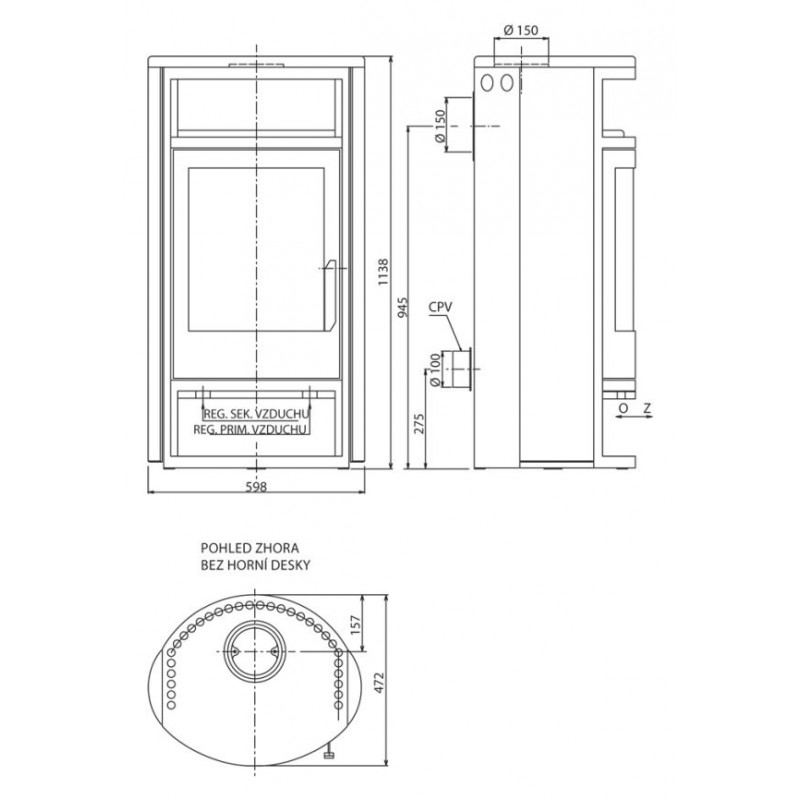 ABX Polar 4654-6-II krbová kamna na dřevo, černý plech + pískovec, vč. horní desky