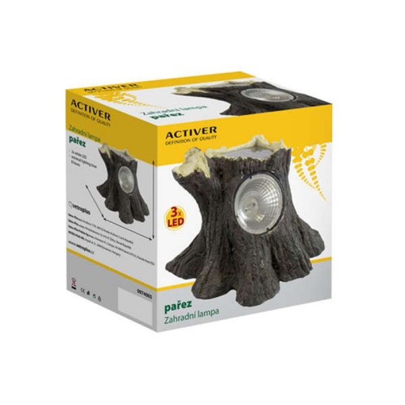 ACTIVER solární lampa pařez 2 0974005Solární lampa - pařez, lampa ve tvaru pařezu se světelným zdrojem LED, solární článek je umístěn v horní části pařezu.