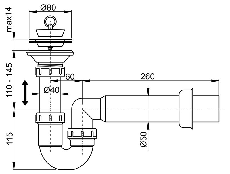 ALCAPLAST Odtoková souprava pro vaničky se zápachovou uzávěrou A464 O50* odtoková souprava pro výlevky a sprchové vaničky