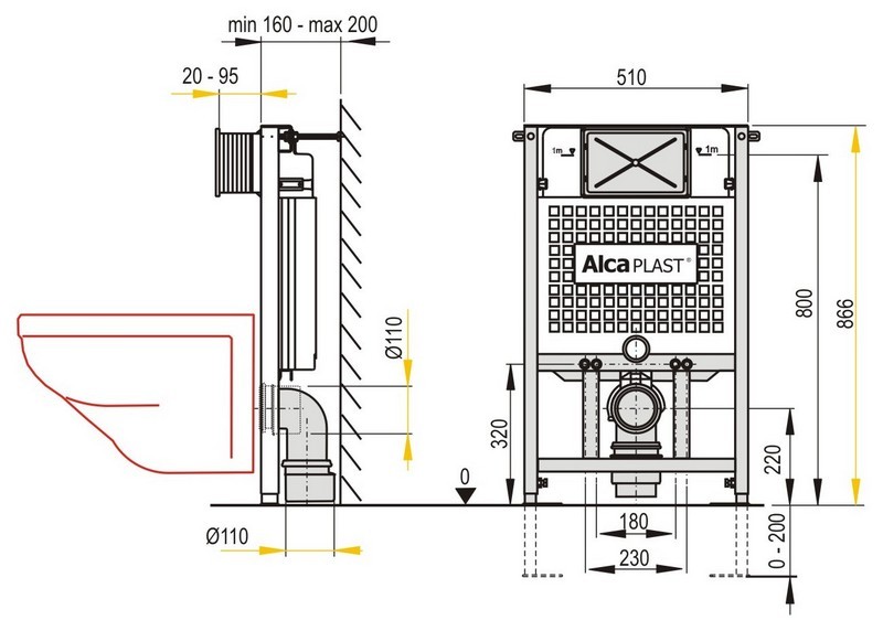 ALCAPLAST Sádromodul - předstěnový instalační systém pro suchou inst. A101/850