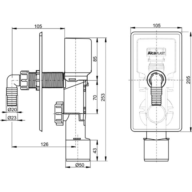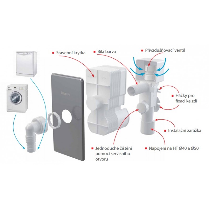 ALCAPLAST Sifon pračkový podomítkový s přivzdušněním, nerez APS3P
