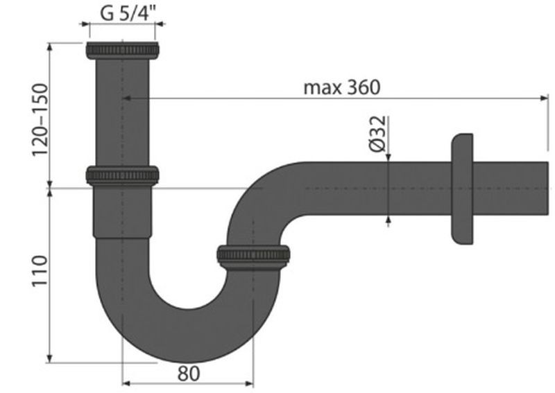 ALCAPLAST Sifon umyvadlový „U“ DN32 s převlečnou maticí 5/4", černá-mat A4320BLACKPoužití