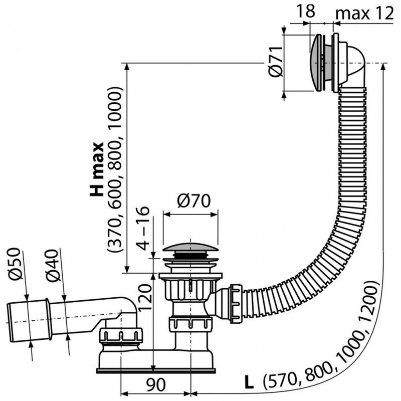 ALCAPLAST Sifon vanový 57cm, click/clack, kov A504CKMPoužití: