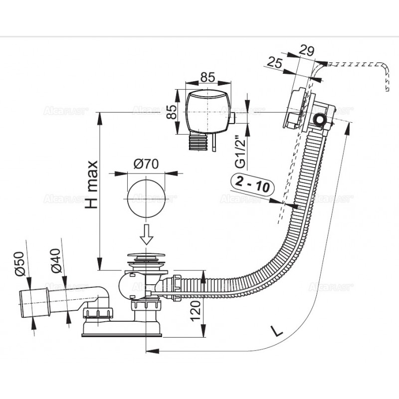 ALCAPLAST Sifon vanový automat s napouštěním přepadem kov A564KM1 80- 80 cm