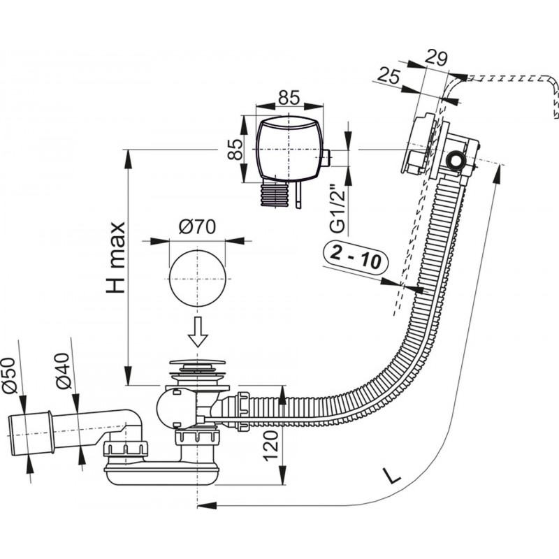 ALCAPLAST Sifon vanový s napouštěním přepadem chrom A564CRM1