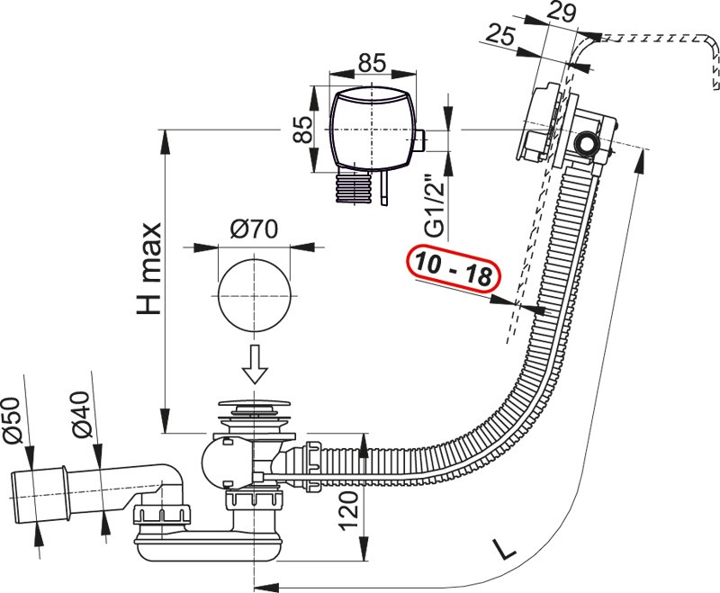 - 4 délkové varianty flexi hadice přepadu (60, 80, 100 a 120 cm)