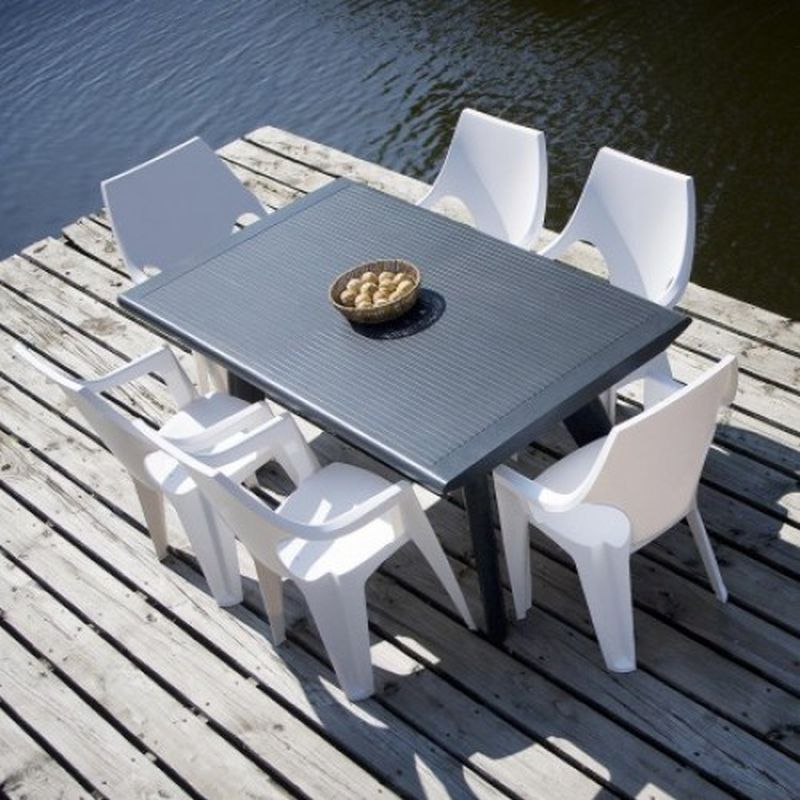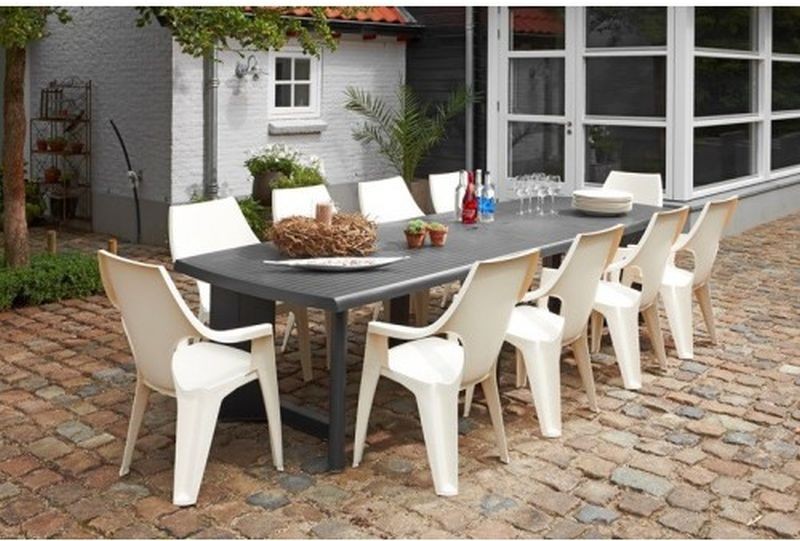Dante je moderní zahradní židle, která má profilované opěradlo a područky pro pohodlné sezení. Tento produkt se vyznačuje vysokou životností a odolností vůči povětrnostním vlivům a UV záření. Čištění měkkým hadříkem vlažnou vodou se saponátem. Židle jsou stohovatelné, což ušetří spoustu místa.