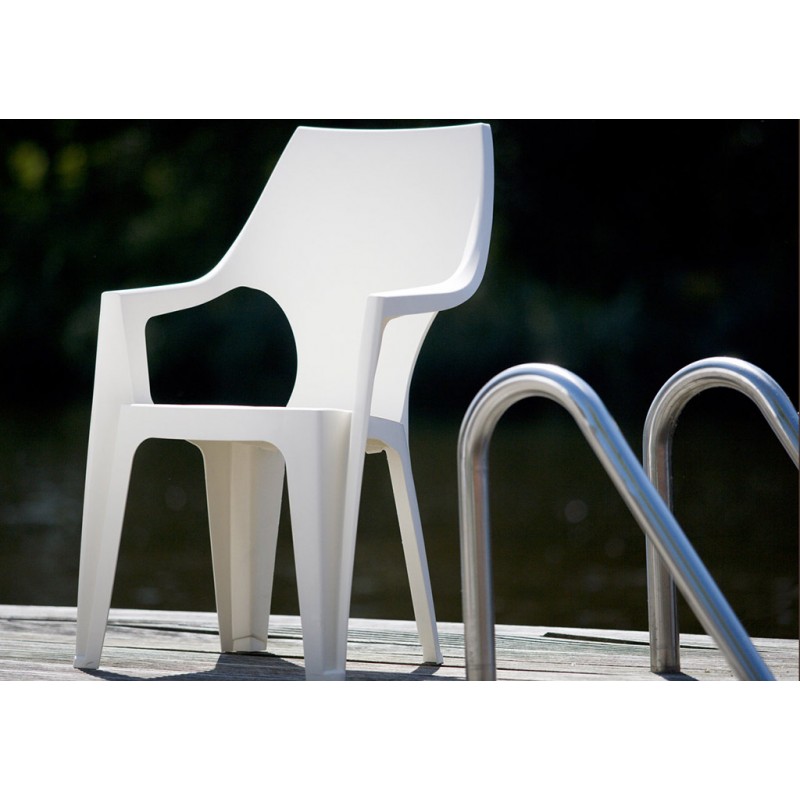 ALLIBERT DANTE zahradní židle, 57 x 57 x 79 cm, světle šedá 17187058DANTE je moderní zahradní židle, která má profilované opěradlo a područky pro pohodlné sezení. Tento produkt se vyznačuje vysokou životností a odolností vůči povětrnostním vlivům a UV záření. Čištění měkkým hadříkem vlažnou vodou se saponátem. Židle jsou stohovatelné.