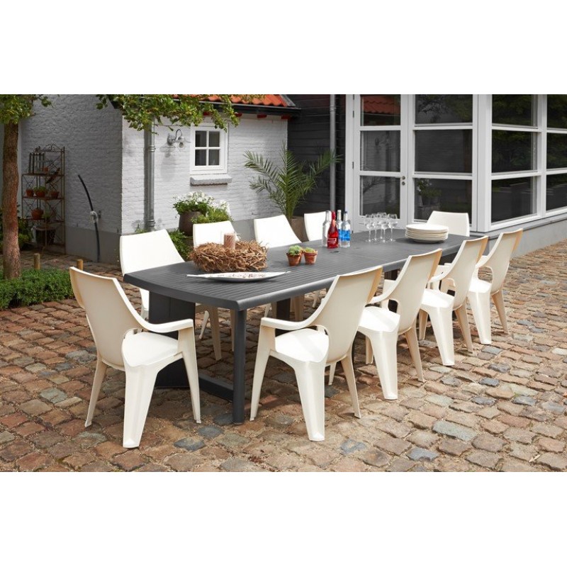 Dante je moderní zahradní židle, která má profilované opěradlo a područky pro pohodlné sezení. Tento produkt se vyznačuje vysokou životností a odolností vůči povětrnostním vlivům a UV záření. Čištění měkkým hadříkem vlažnou vodou se saponátem. Židle jsou stohovatelné, což ušetří spoustu místa.