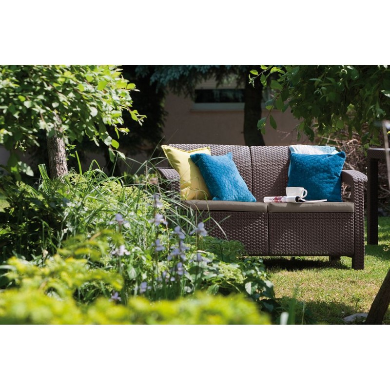 ALLIBERT CORFU LOVE SEAT Pohovka, 128 x 70 x 79cm, hnědá/šedo-béžová 17197359