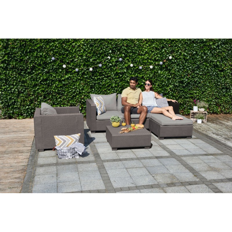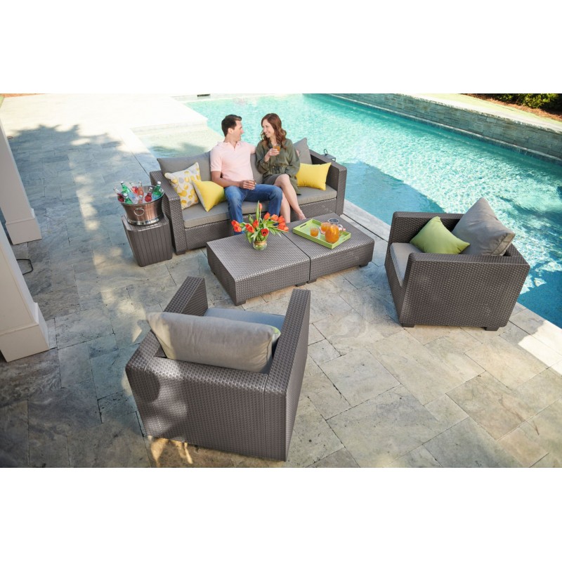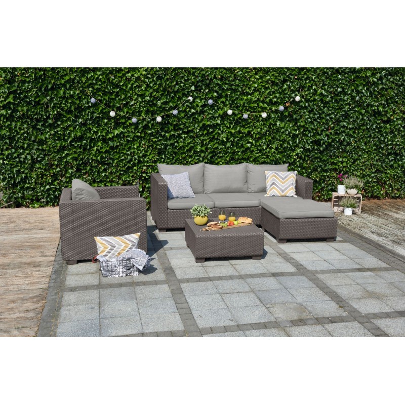 ALLIBERT SALTA 3 Pohovka, 200,5 x 84 x 65,5 cm, cappuccino/písková 17206018Vylepšete vzhled Vašeho venkovního prostoru třímístnou pohovkou Salta, která má elegantní proutěnou texturu a extra široká sedadla s hlubokými polštáři. Vyrobena z pryskyřice odolné proti povětrnostním vlivům. Snadná montáž díky inovativní technologii FLOW, která také dodává elegantní vzhled.