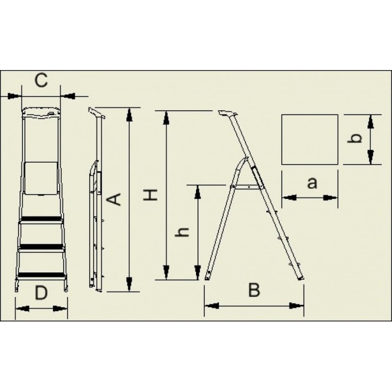 ALVE schůdky jednostranné hliníkové s poličkou 0,76 m 1944Jednostranné schůdky s poličkou Eurostyl, počet nášlapů včetně plošinky 1x3 až 1x6, rozměry plošinky 264 x 262 mm, max. výška plošinky 0,55 až 1,19 m a šířka schůdků 407 až 480 mm.