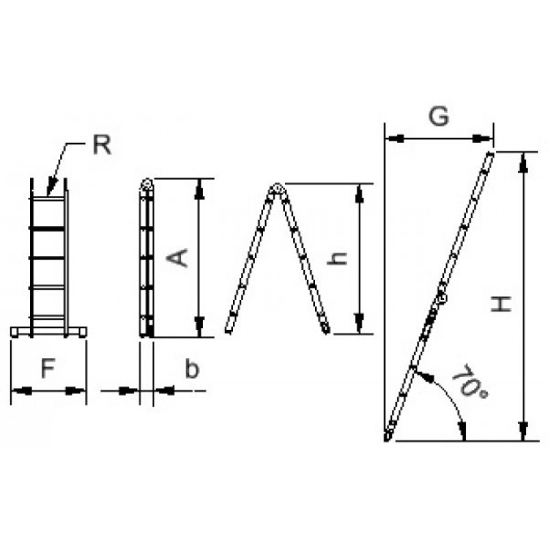 ALVE žebřík dvoudílný kloubový 4205Žebřík dvojdílný kloubový Forte, počet příček 2 x 5, výška 2,76 m a šířka 350 mm.