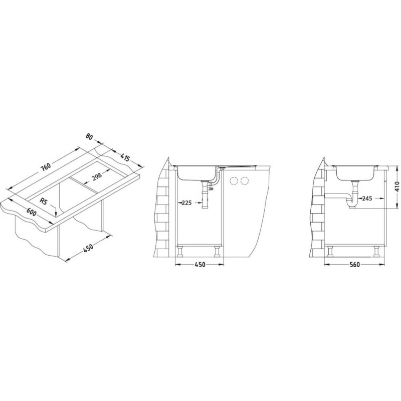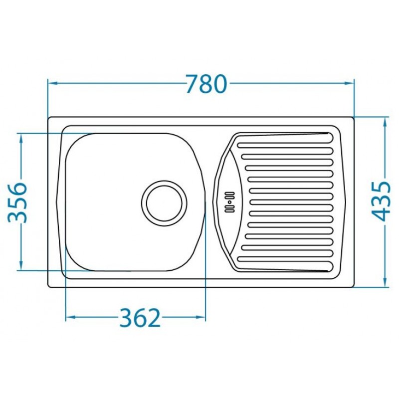 ALVEUS Basic 150 kuchyňský dřez satin, 780x435 mm, 1009158, otvor pro baterii viz. foto