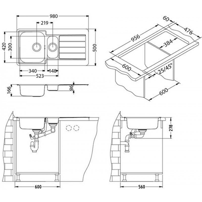 ALVEUS LINE 10 Monarch kuchyňský dřez, 980 x 500 mm, antracit 1078568