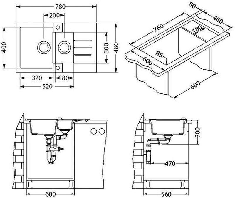 - Rozměr dřezu: 780 x 480 mm