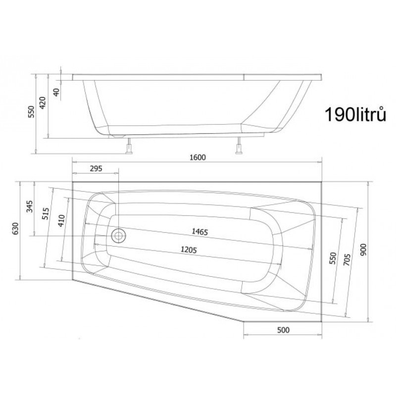 AQUALINE BEROUNKA vana excentrická 160x90x42cm, pravá, A1691