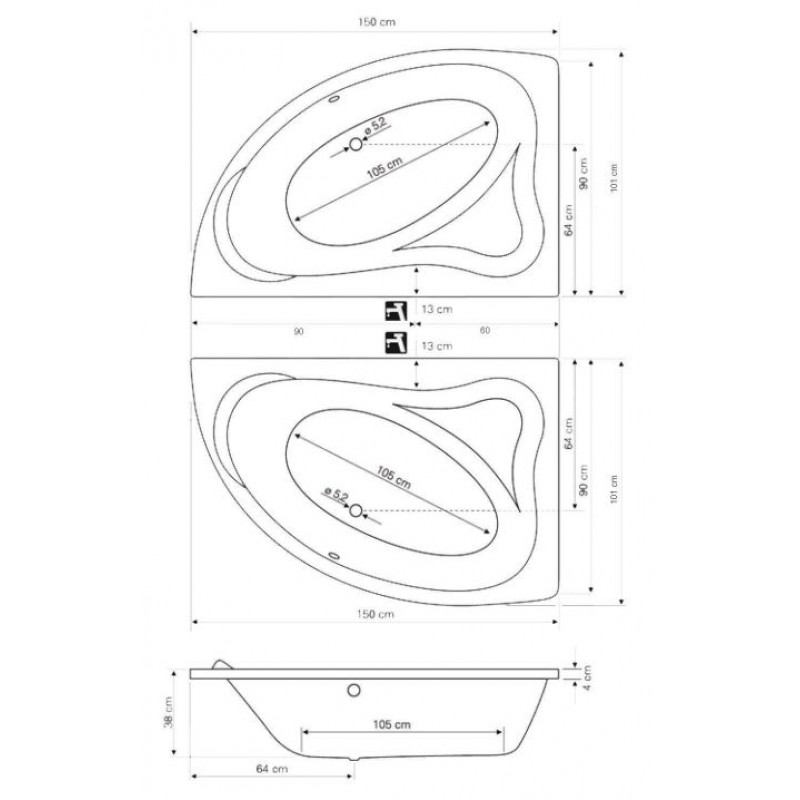 AQUALINE ORAVA vana 150x90x38cm, levá G1590