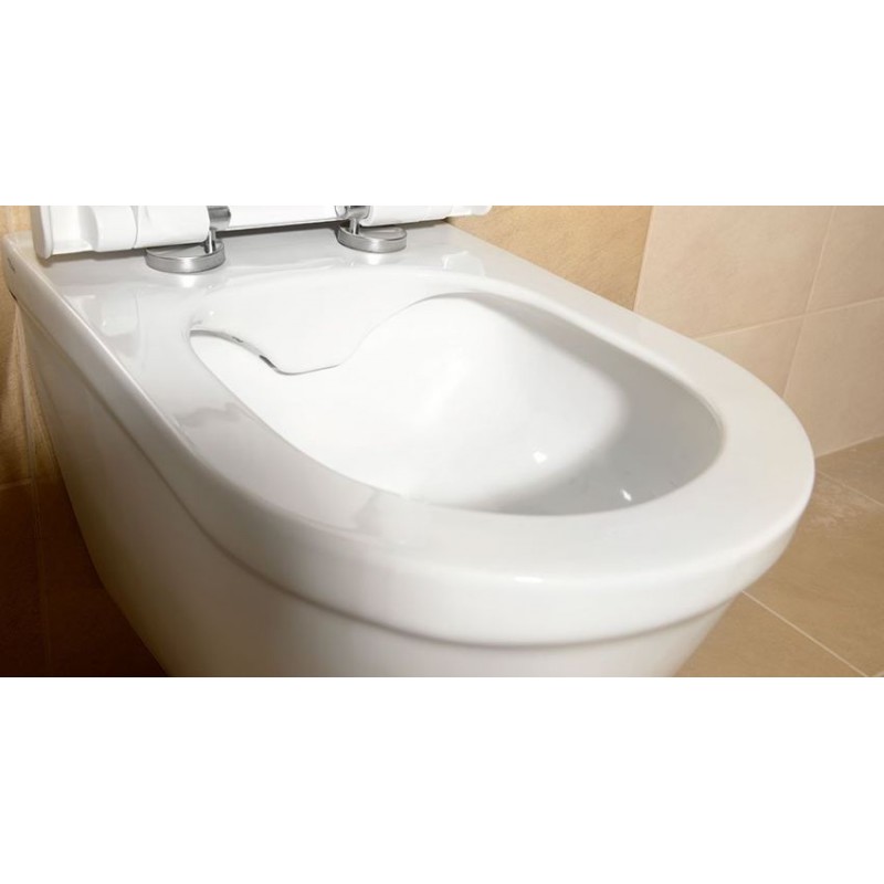 Technologie RIMLESS to je hladký povrch keramiky bez dutin a záhybů. Oplachovací voda vytéká rozdělovačem vody pouze ze zadní části WC mísy a díky speciálnímu tvaru keramiky dokonale opláchne vnitřní prostor. Výhodou je i snadná údržba a čištění WC mísy.