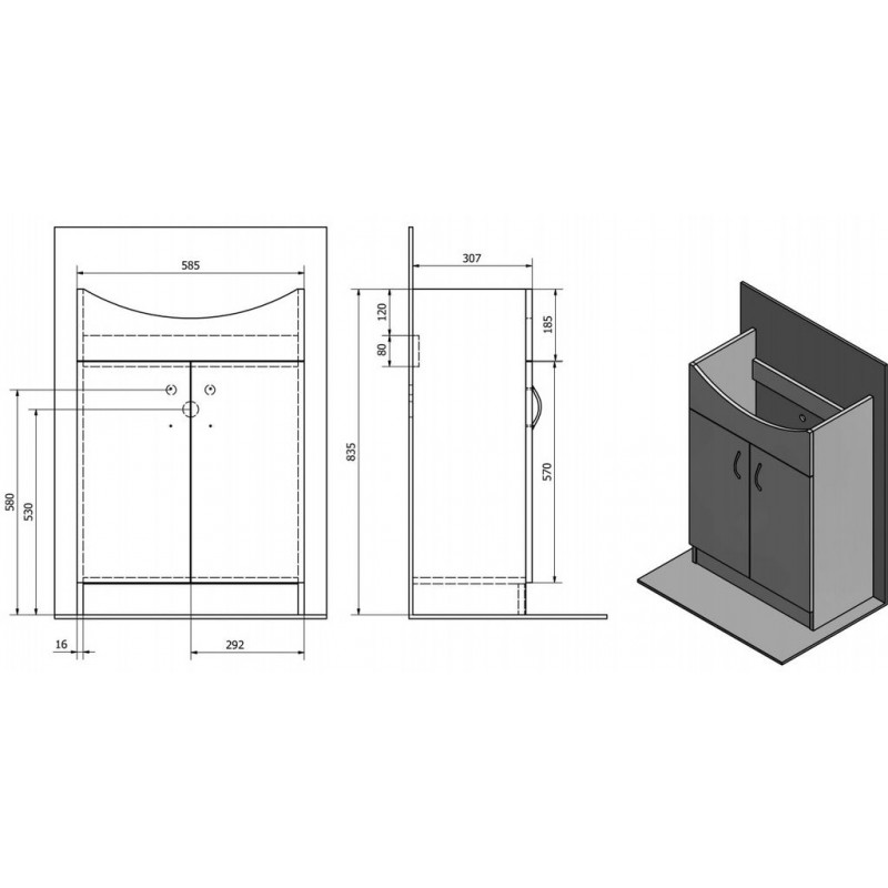 AQUALINE SIMPLEX ECO 60 umyvadlová skříňka včetně umyvadla 58,5x83,5x30,7cm SIME600