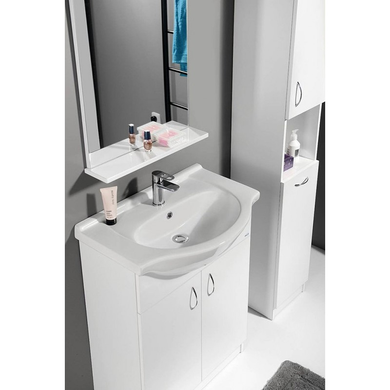 Koupelnový nábytek z bílého lamina, nejjednodušší řešení pro Vaši koupelnu. Nabídka umyvadlových skříněk ve 4 rozměrech v šířkách od 50 cm do 65 cm v kombinaci s několika variantami doplňkových skříněk nabízí příznivé uspořádání nábytku téměř do každé koupelny za nejlepší cenu.
