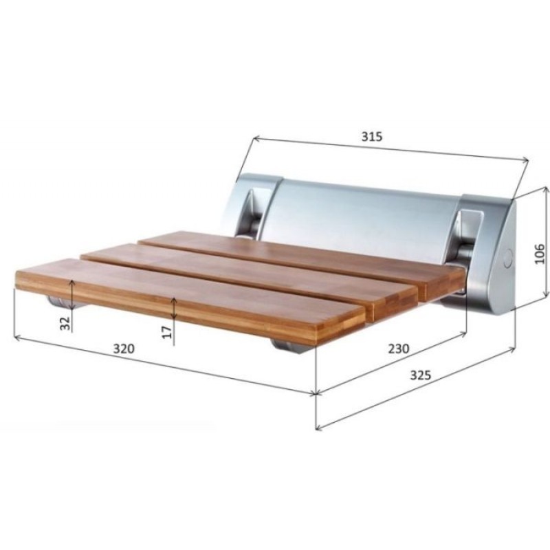 Sklopné sedátko do sprchy se sedací plochou z bambusuKonstrukce: eloxovaný hliník