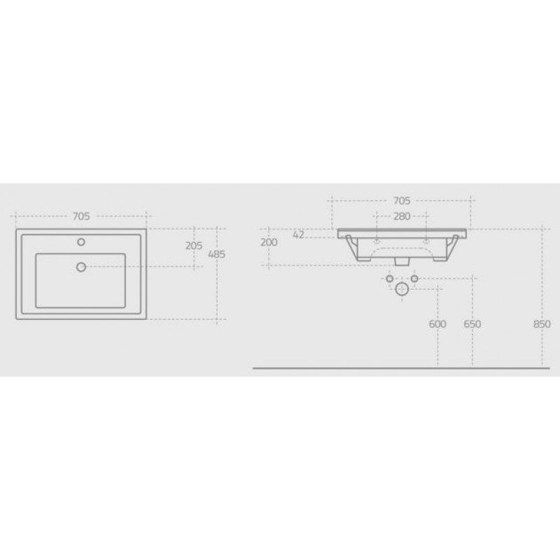 AQUALINE ZENO 70 nábytkové umyvadlo 70x48,5cm, 8070