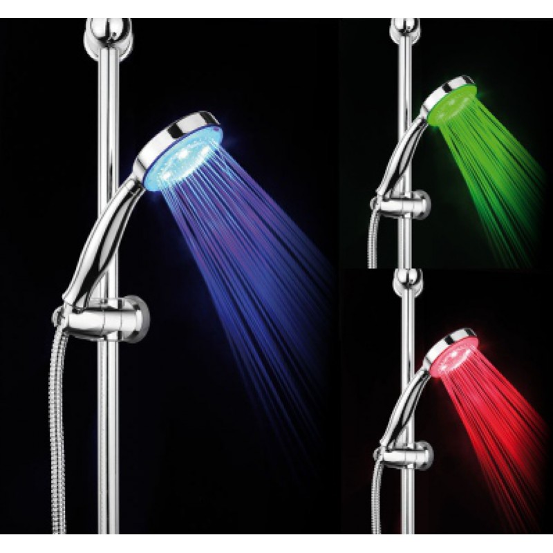 Ruční sprcha s LED osvětlením dokáže ve tmě jemně osvítit celou koupelnu a dodat sprchování na intimitě. Barevné efekty vody závisí na její teplotě: při teplotě do 32 °C se voda zbarví do modra, v rozmezí od 32-41 °C do zelena a nad 41 °C do červena. Při teplotě nad 46 °C jsou LED diody zbarvené do červena a dokonce i blikají. Madlo sprchy je uzpůsobeno tvaru lidské pěsti, aby bylo sprchování ještě příjemnější. Ruční sprcha LED je vyrobena z vysoce kvalitního chromu.