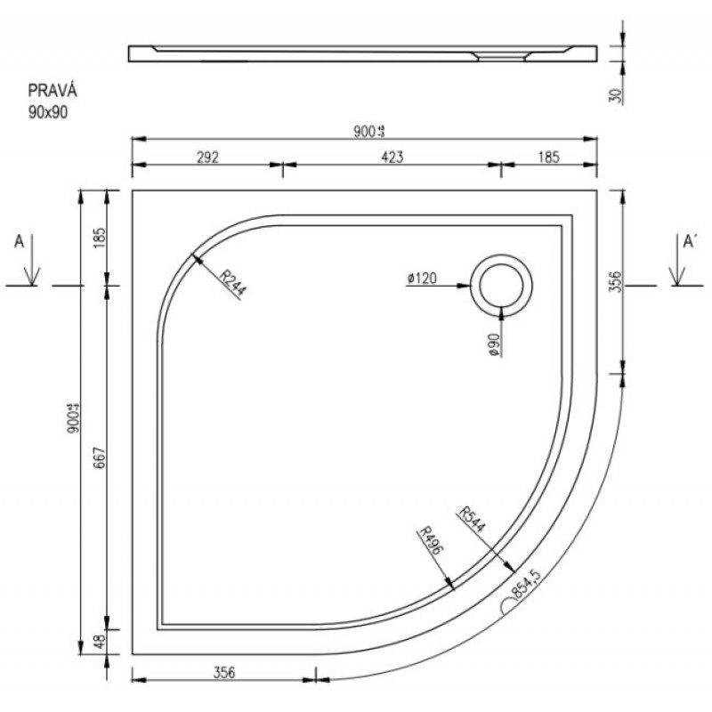 ARTTEC STONE 9090R P - sprchová vanička čtvrtkruhová PAN00788- rozměry: 90x90x3 cm