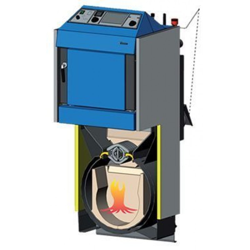 Těleso kotlů je vyrobeno jako svařenec z kvalitních ocelových plechů o tloušťce 6 až 3 mm. Je tvořeno dvěma nad sebou posazenými komorami, vrchní slouží jako zásobník paliva, spodní jako spalovací komora a popelník. Mezi nimi je umístěn nový, patentem chráněný otočný rošt, který umožňuje dokonalé zplynování paliva a snadné odstraňování popela. V zadní části tělesa kotlů je svislý spalinový kanál, opatřený ve vrchní části zatápěcí záklopkou. Vrchní část spalinového kanálu je opatřena odtahovým hrdlem pro připojení na komín.
