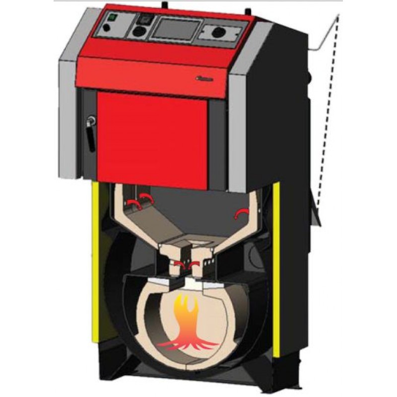 Kotle jsou konstruovány pro spalování dřeva, na principu generátorového zplynování s použitím odtahového ventilátoru (S), který odsává spaliny z kotle, nebo s použitím tlačného ventilátoru, který vhání spalovací vzduch do kotle.Těleso kotlů je vyrobeno jako svařenec z kvalitních ocelových plechů o tloušťce 8 až 3 mm. Tvoří je násypka paliva (6 mm) , která je ve spodní části opatřena zplynovací tryskou s podélným otvorem pro průchod spalin a plynů. Dohořívací prostor pod ní je opatřen keramickými tvarovkami pro ideální vyhoření všech spalitelných látek s vysokou účinností při ekologicky šetrném spalování. V zadní části tělesa kotlů je svislý spalinový kanál, opatřený ve vrchní části zatápěcí záklopkou. Vrchní část spalinového kanálu je opatřena odtahovým hrdlem pro připojení na komín.
