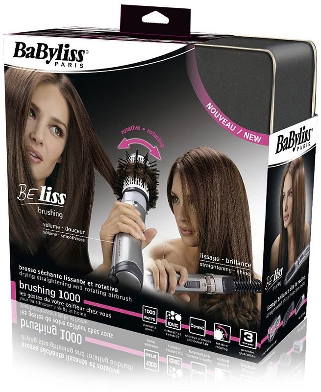 BaByliss 2735E Kulma horkovzdušnáHorkovzdušná kulma na vlasy s rotačním horkovzdušným kartáčem a narovnávačem vlasů. Kulma vyzařuje ionty pro stimulaci statického náboje ve vlasech, které působí pozitivně na vlákna vlasů, sušení a tvarování vlasů je šetrné a velmi rychlé.