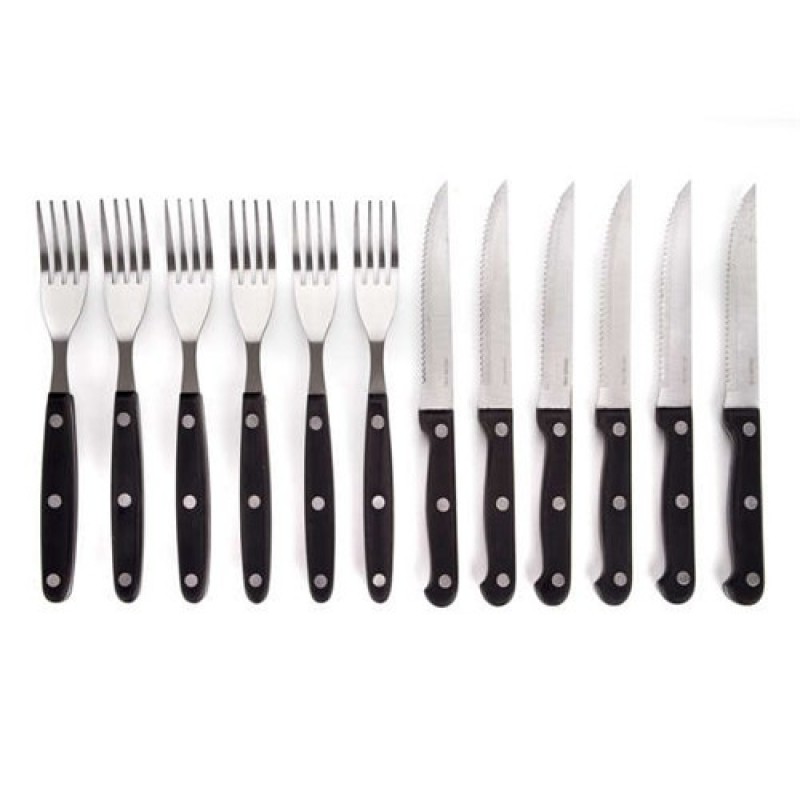 BANQUET 12-dílný steakový set BBQ Blistr 453283BK1212dílný steakový set BBQ, sada steakových příborů s černou plastovou rukojetí, sada obsahuje : 6x nůž-síla materiálu 1,2mm, 6x vidlička se čtyřmi hroty-síla materiálu 1,7mm, rukojeť tloušťky 1,4cm, nerez 18/0.
