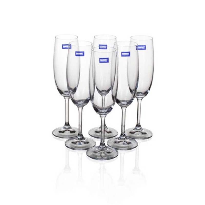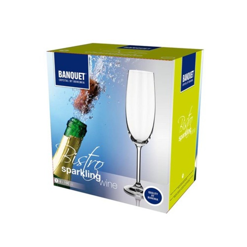 BANQUET Bistro Crystal sklenice na šampaňské, 190ml, 6ks, 02B4G0021906 dílná sada sklenic Crystal Banquet šumivé víno 190, 6 ks v ozdobném obalu. Velmi kvalitní sklo české výroby, tvrzený okraj, vhodné do gastro provozu. Vhodné jako dárek.