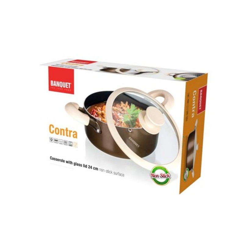 BANQUET CONTRA Hrnec s nepřilnavým povrchem 24 x 11 cm, se skleněnou poklicí