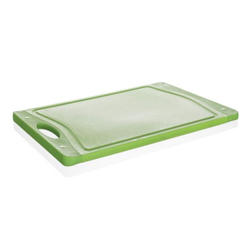 Prkénko krájecí plastové, dvoubarevné provedení v barvě zelené, protiskluzová úprava. Rozměry: 37 x 25,5 x 0,95 cm. Nová série prkének, která svojí barevností umožní hygienické třídění a krájení potravin, červená - MASO, zelená - ZELENINA, oranžová - PEČIVO.Délka (cm):37,5