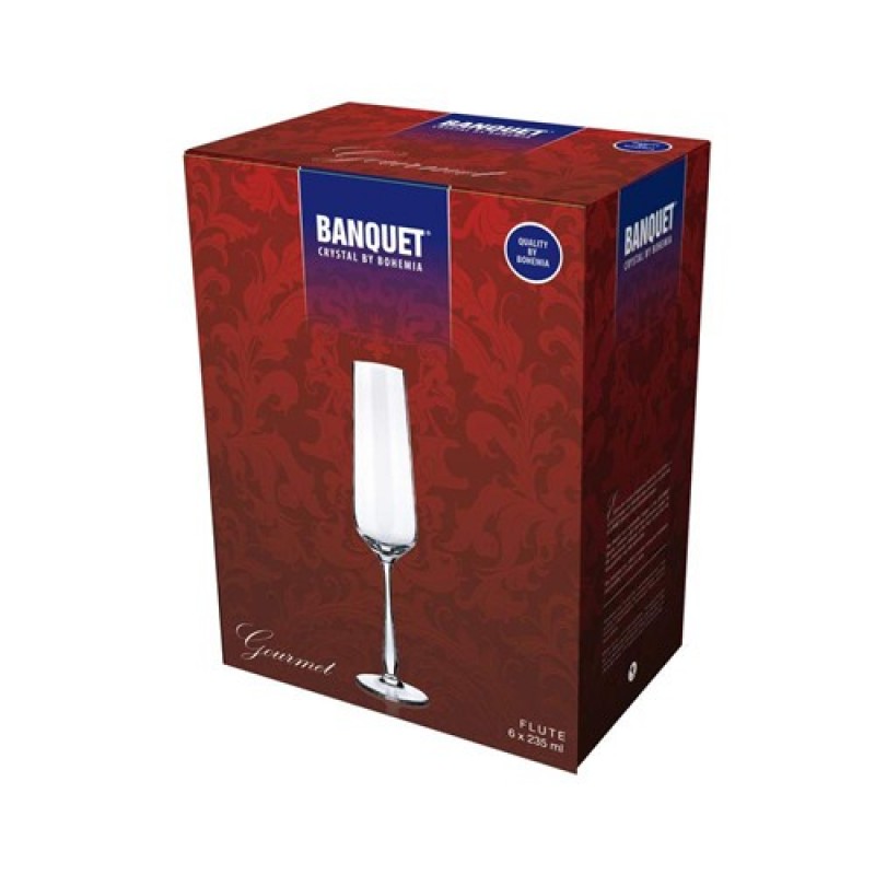 BANQUET Gourmet Crystal sklenice na šampaňské, 235 ml, 6ks, 02B2G0032356 dílná sada sklenic Gourmet Crystal Banquet šampaň. flétna 235, 6 ks v ozdobném obalu. Velmi kvalitní sklo české výroby, tvrzený okraj, vhodné do gastro provozu. Vhodné jako dárek.