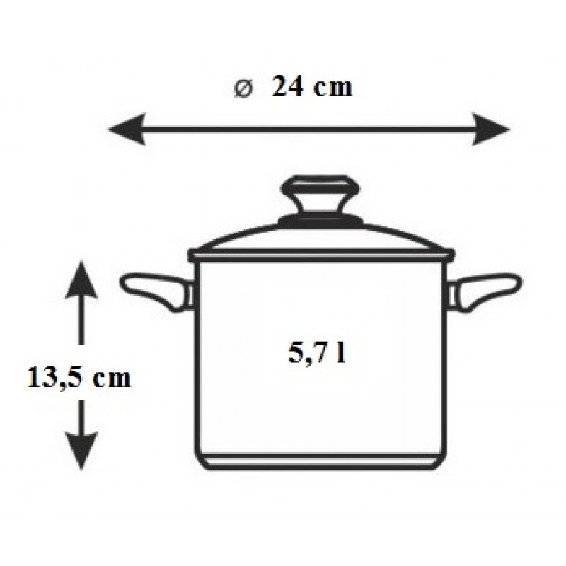 BANQUET Hrnec s poklicí 24cm, 5,7L Maestro Red 48HF09RC24Hrnec s poklicí 5,7L Maestro Red, průměr 24cm x 13,5cm výška, objem 5,7L. Úprava: uvnitř i vně lesk, uvnitř měrka, vně transparent barva až po okraj. tělo nerez 201 (14/1) síla 0,50mm, dno 1,0mm hliník + 1,5mm železo, vnější plášť dna 18/0 - indukční protektor. poklice skleněná tvar C.