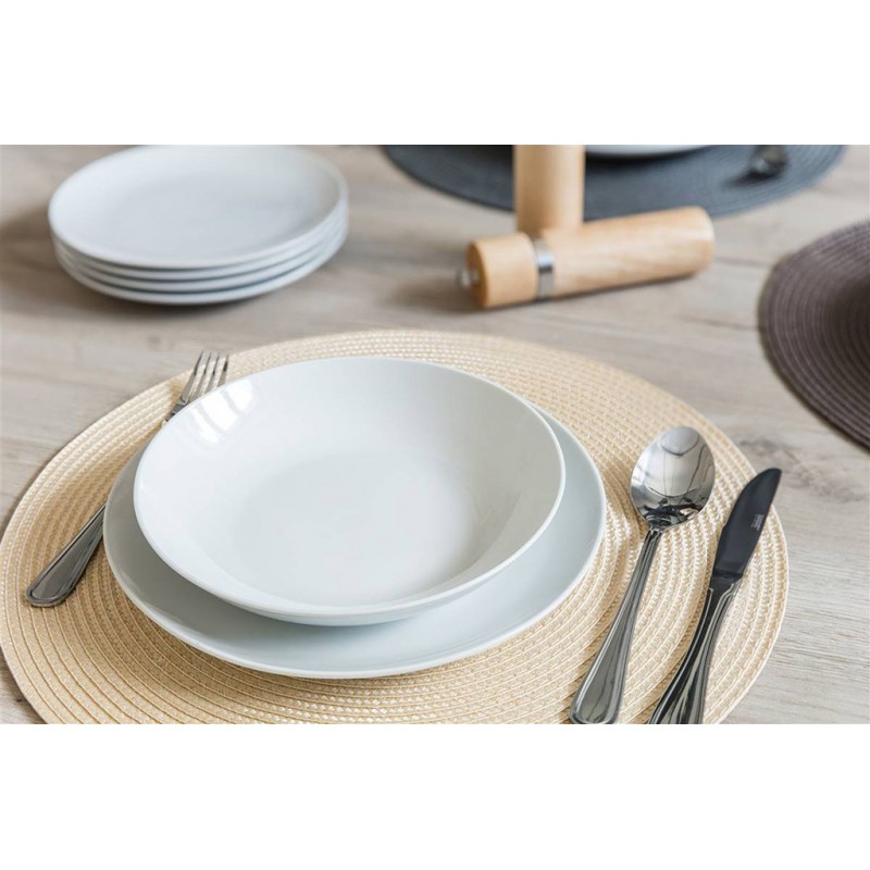 18dílná talířová sada v bílé barvě je vyrobena z porcelánu. Sada obsahuje: 6 x dezertní talíř 19 cm, 6 x hluboký talíř 21,5 cm a 6 x mělký talíř 24 cm. Talíře lze používat do mikrovlnné trouby a mýt v myčce na nádobí.Parametry: