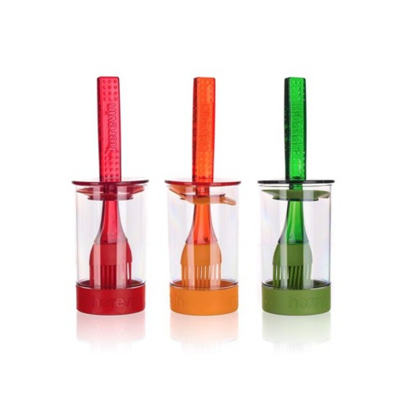 Plastová dóza se silikonovou mašlovačkou je ideálním pomocníkem pro výrobu marinád a následnému potírání pokrmu. Objem dózy je 260 ml. Plastová dóza s mašlovačkou je dodávána v barvách - červená, zelená, oranžová.Výška (cm):21