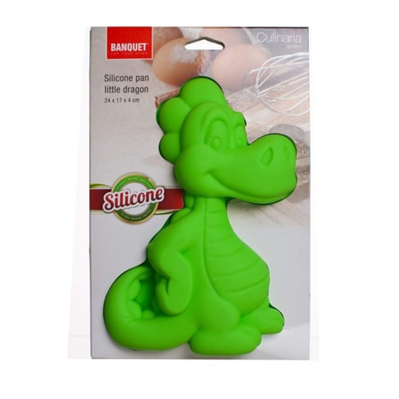 BANQUET Silikonová forma dráček 24x17x4 cm Culinaria green 3122090GSilikonová forma dráček 24x17x4 cm Culinaria green. Forma je odolná vysokým teplotám, do 240 st., lze jí používat do mikrovlnné trouby a do myčky na nádobí, neváže chutě ani pachy pokrmů, snadno se udržuje. Silikon je velmi populární materiál, který pro své jedinečné vlastnosti našel své uplatnění i v kuchyni. Vyrábí se z něj různé druhy forem na pečení, vály a válečky na těsto, stěrky, mašlovačky, různé druhy kuchyňské náčiní a mnohé další výrobky.