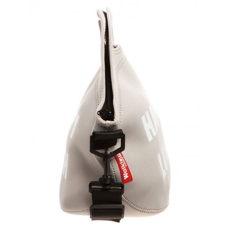 - Taška má dvě ucha, zapínání na zip, odnímatelný popruh a potisk vpředu.