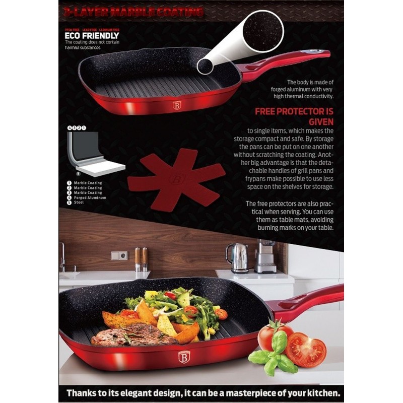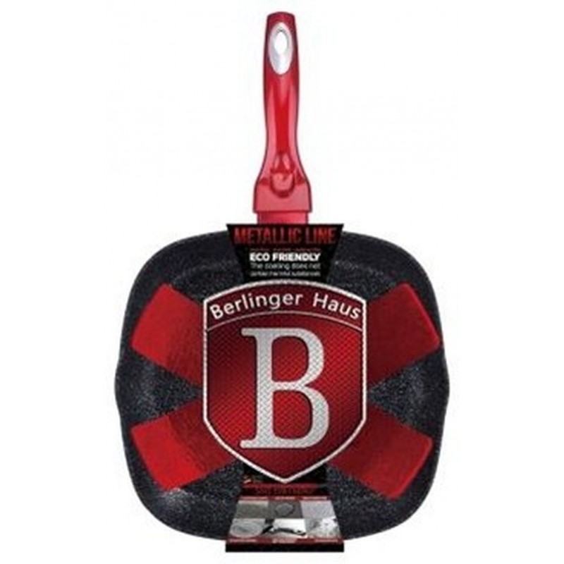 BERLINGERHAUS Burgundy Metallic Line pánev grilovací 28 cm, červená BH-1271- materiál: kovaný hliník s mramorovým povrchem