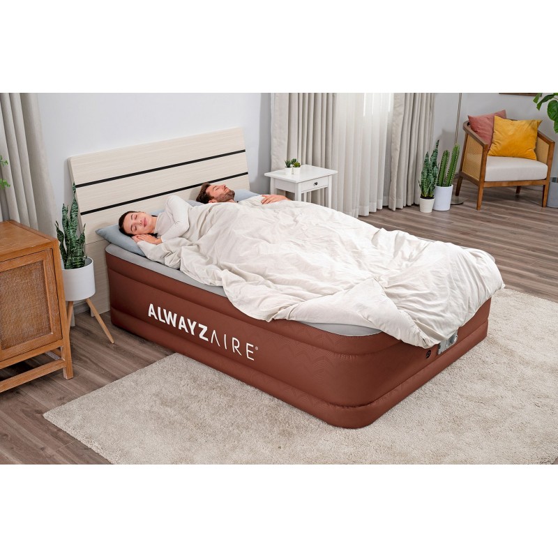 - Vestavěná dvojitá pumpa AlwayzAire® Comfort Choice+™ – rychlé nafouknutí za 3 minuty, tichý režim udržuje tlak po celou noc.