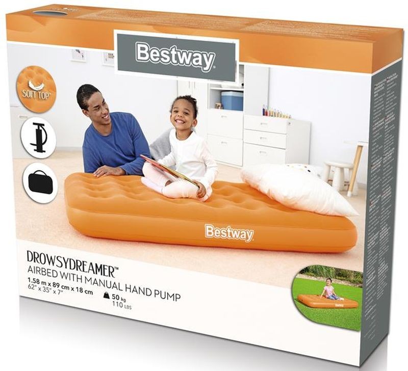 BESTWAY DrowsyDreamer Nafukovací matrace, 158 x 89 x 18 cm, oranžová 67918
